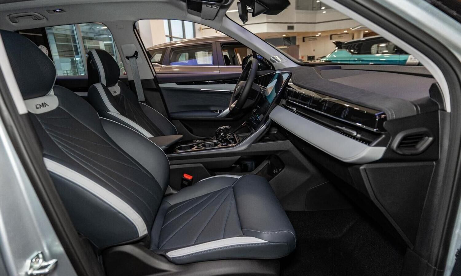 • Отделка интерьера и сидений тёмно-серой экокожей со светлыми вставками