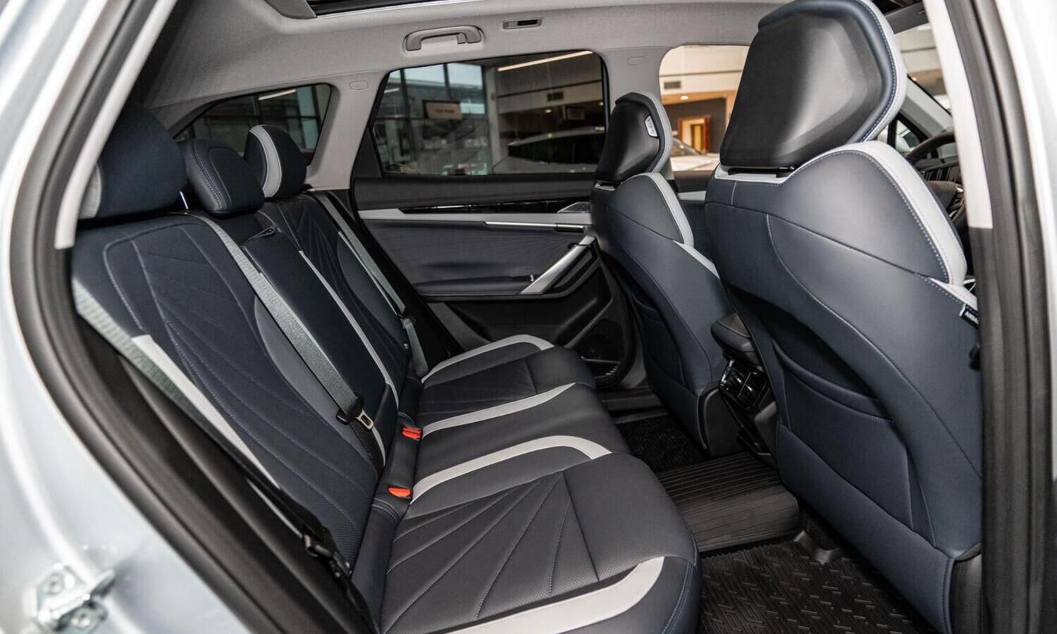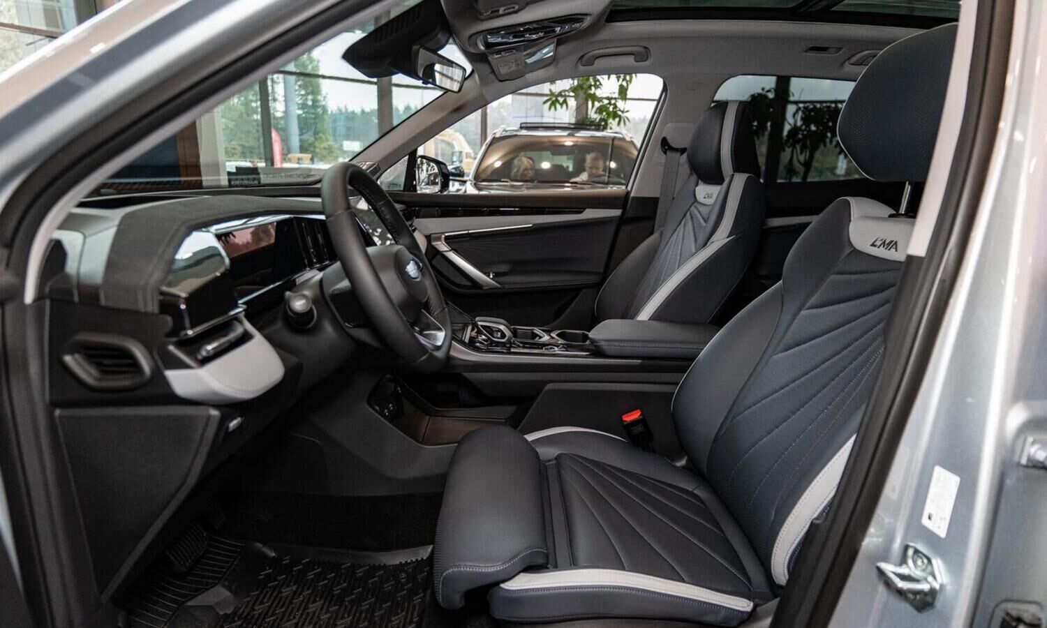 • Отделка интерьера и сидений тёмно-серой экокожей со светлыми вставками