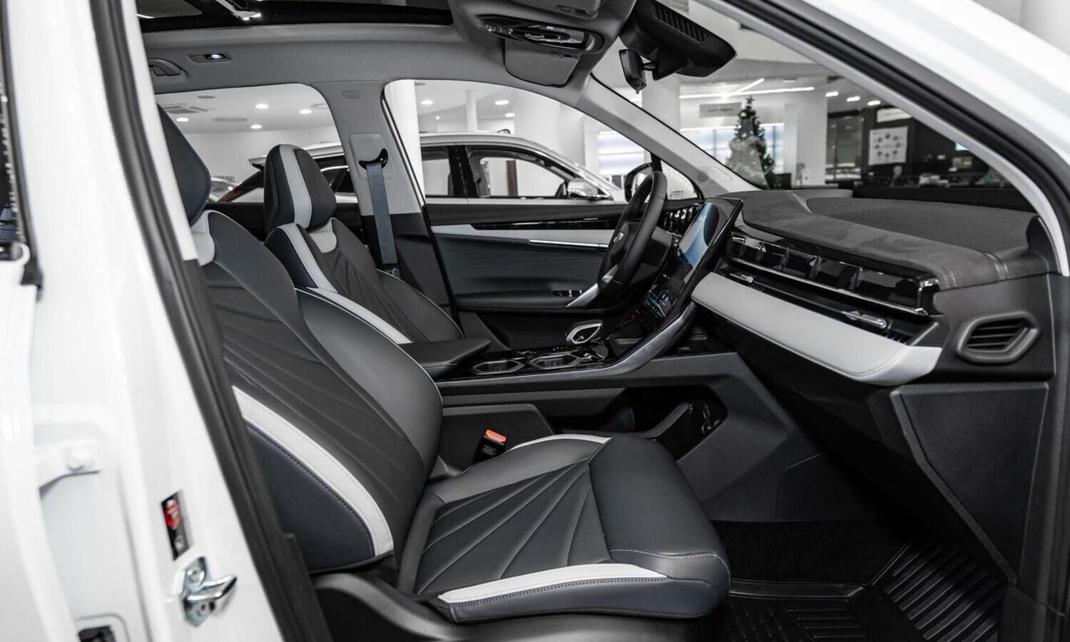 • Отделка интерьера и сидений тёмно-серой экокожей со светлыми вставками
