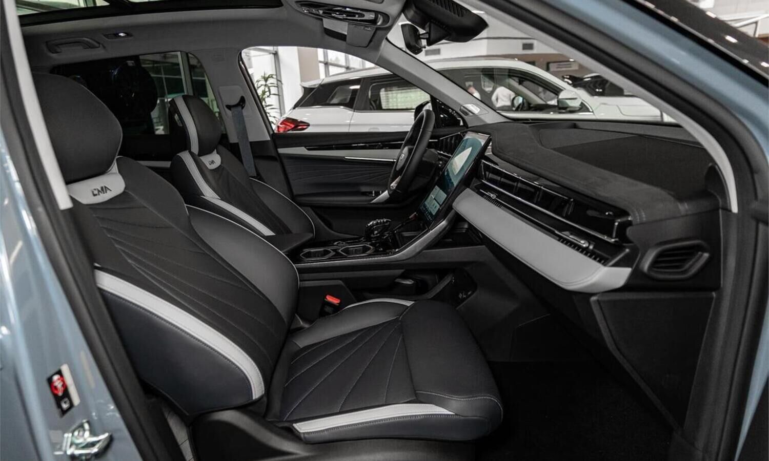 • Отделка интерьера и сидений тёмно-серой экокожей со светлыми вставками