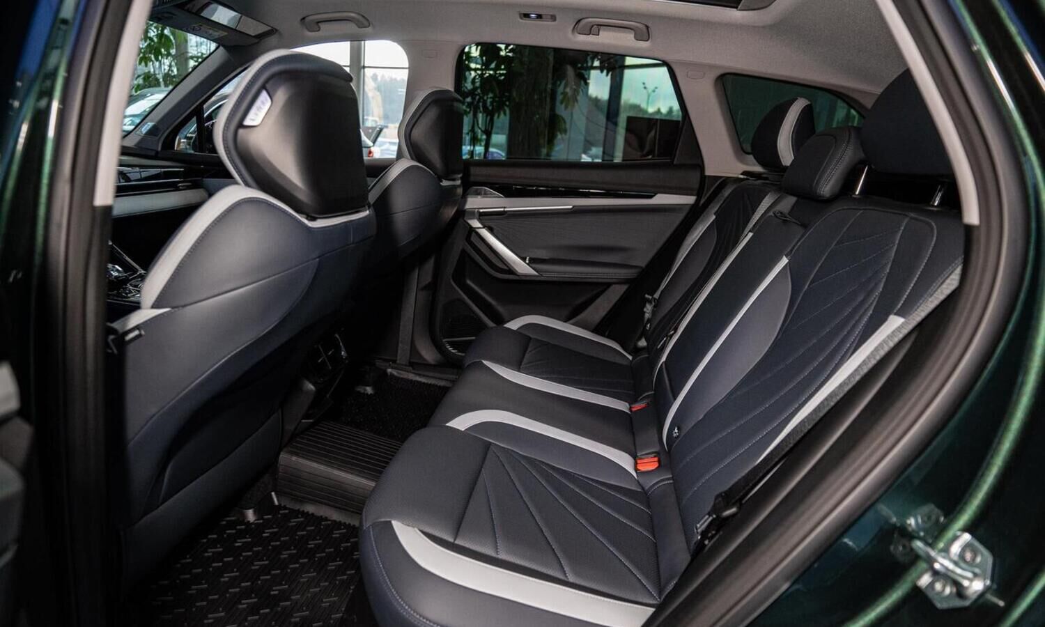 • Отделка интерьера и сидений тёмно-серой экокожей со светлыми вставками
