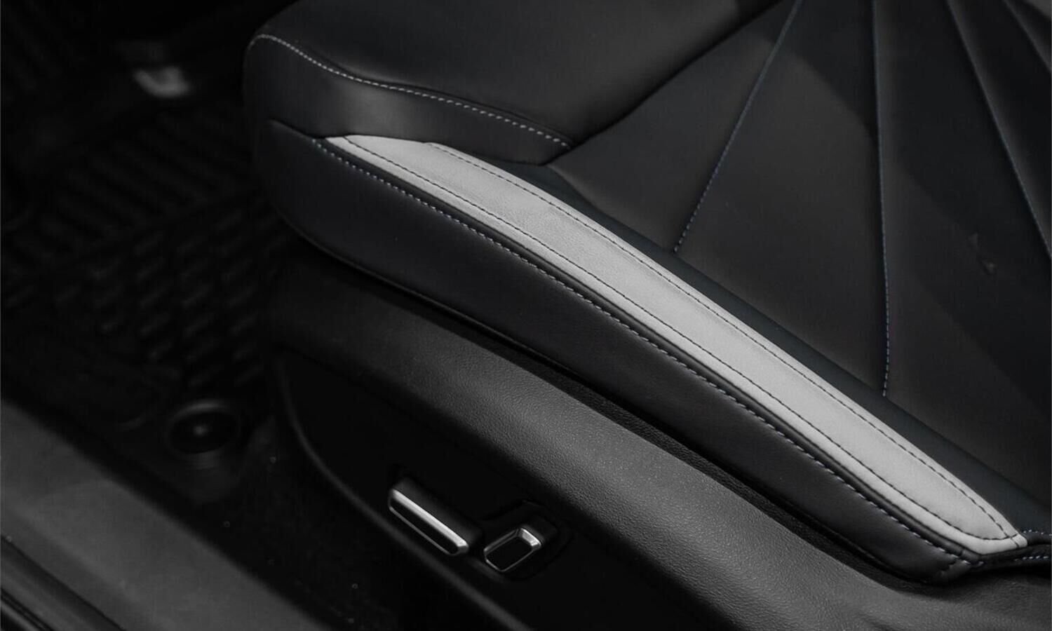 • Отделка интерьера и сидений тёмно-серой экокожей со светлыми вставками