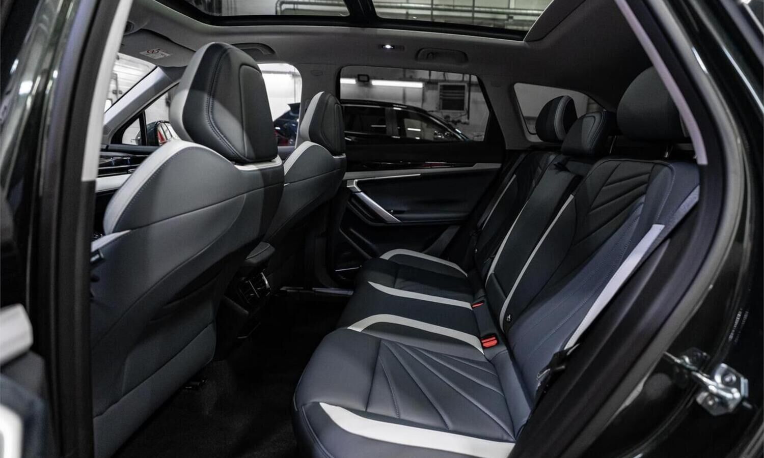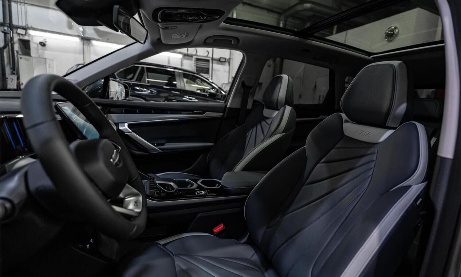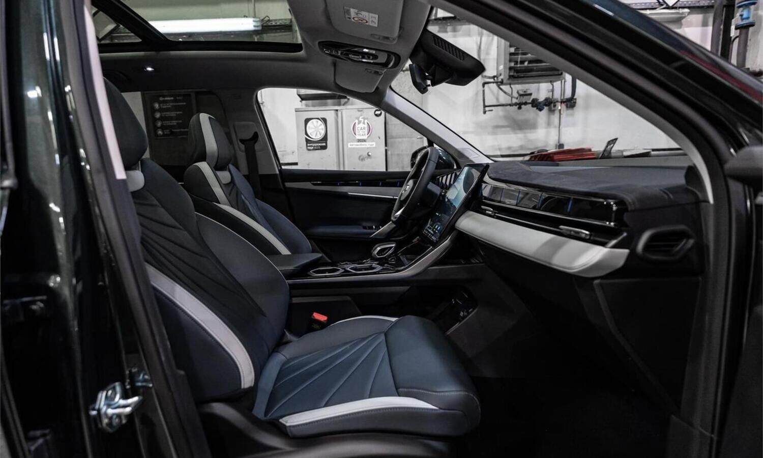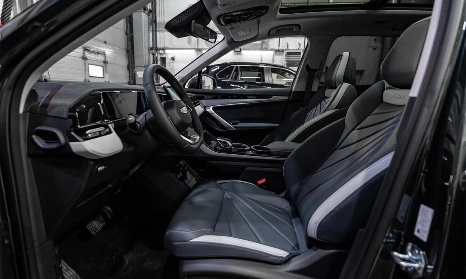 • Отделка интерьера и сидений тёмно-серой экокожей со светлыми вставками